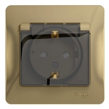 Розетка с заземлением, со шторками (с крышкой) IP44, Платина, Schneider Electric Glossa