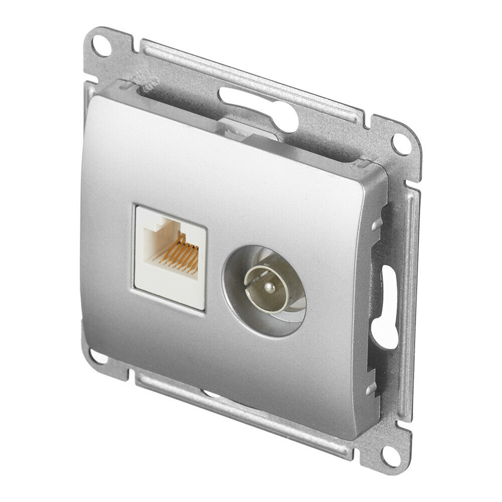 Розетка компьютерная + телевизионная 2-м Glossa RJ45 кат.5E + TV механизм, платина