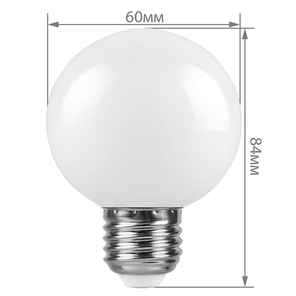 Лампа для гирлянд Белт-Лайт Е27 шарик G60 3Вт теплый свет 2700К матовая Feron LB-371 информация: