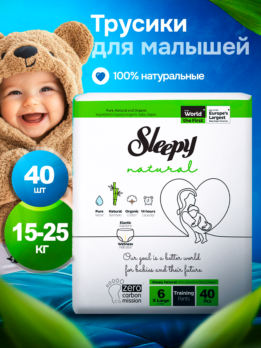 Подгузники-трусики Sleepy Natural, 6XL,15-25 кг, 40шт информация: