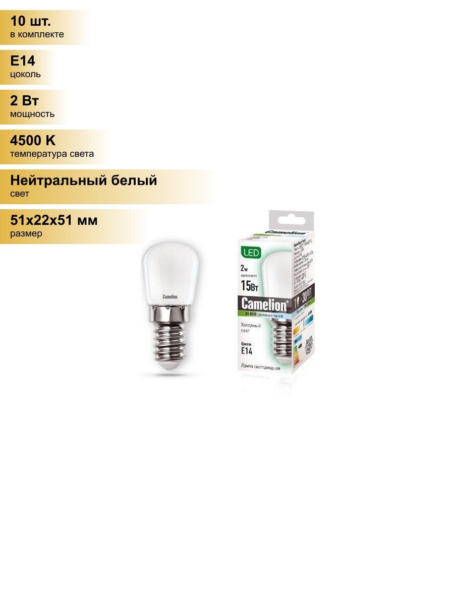 10 цен на (10 шт.) Светодиодная лампочка Camelion T26 E14 2W(105lm 220°) 4500K 4K матовая 51x22 для холодильников и вытяжек LED2-T26/845/E14 Нейтральный белый. Цоколь E14