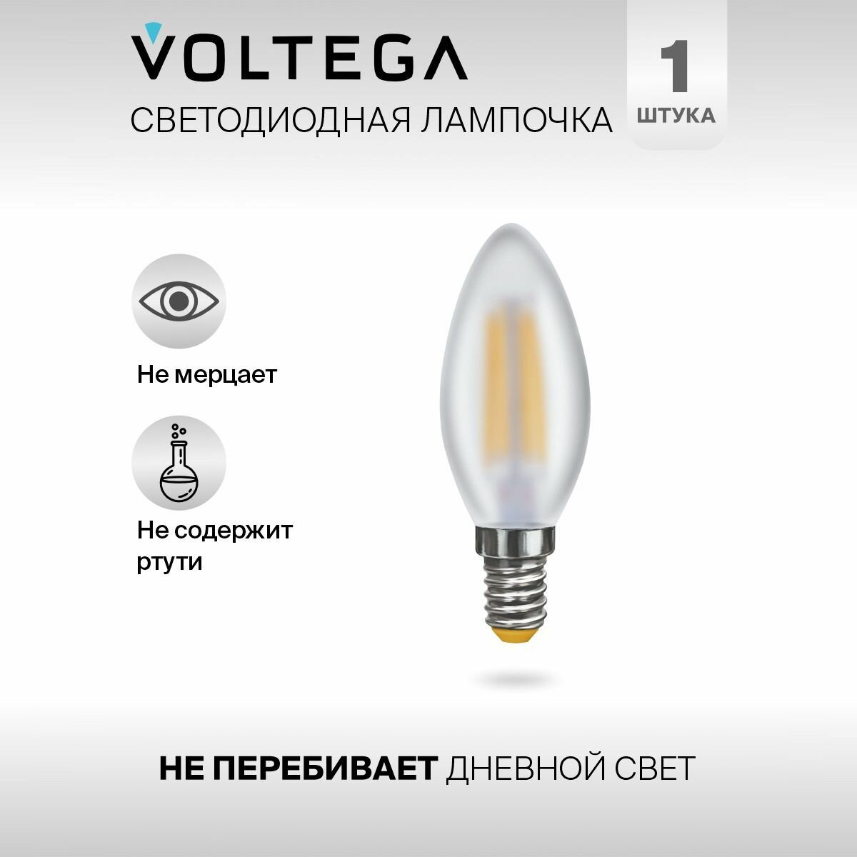 Отзывы на Лампочка светодиодная E14 форма матовая свеча 6W теплый свет Voltega Crystal Candle matt 2800K 1 шт.