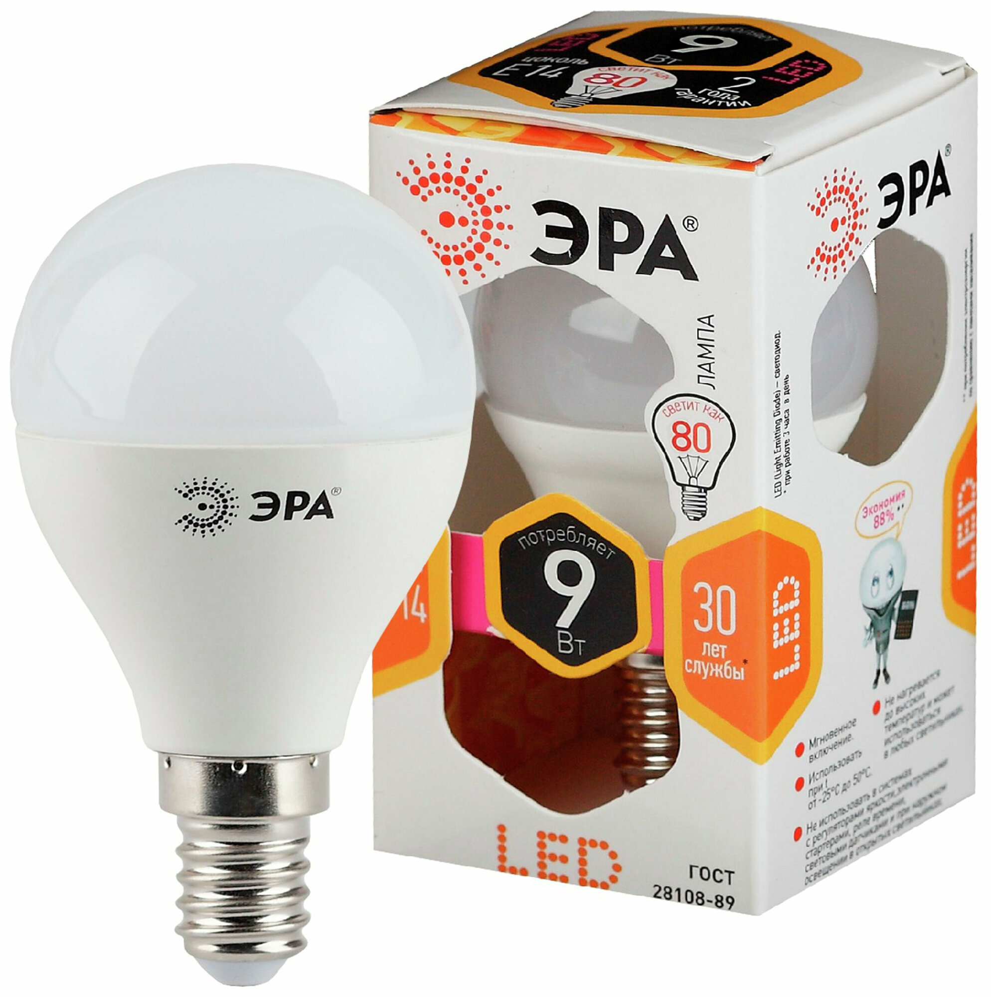 ЭРА Б0029041 Лампа светодиодная ЭРА LED P45-9W-827-E14 (диод, шар, 9Вт, тепл, E14)