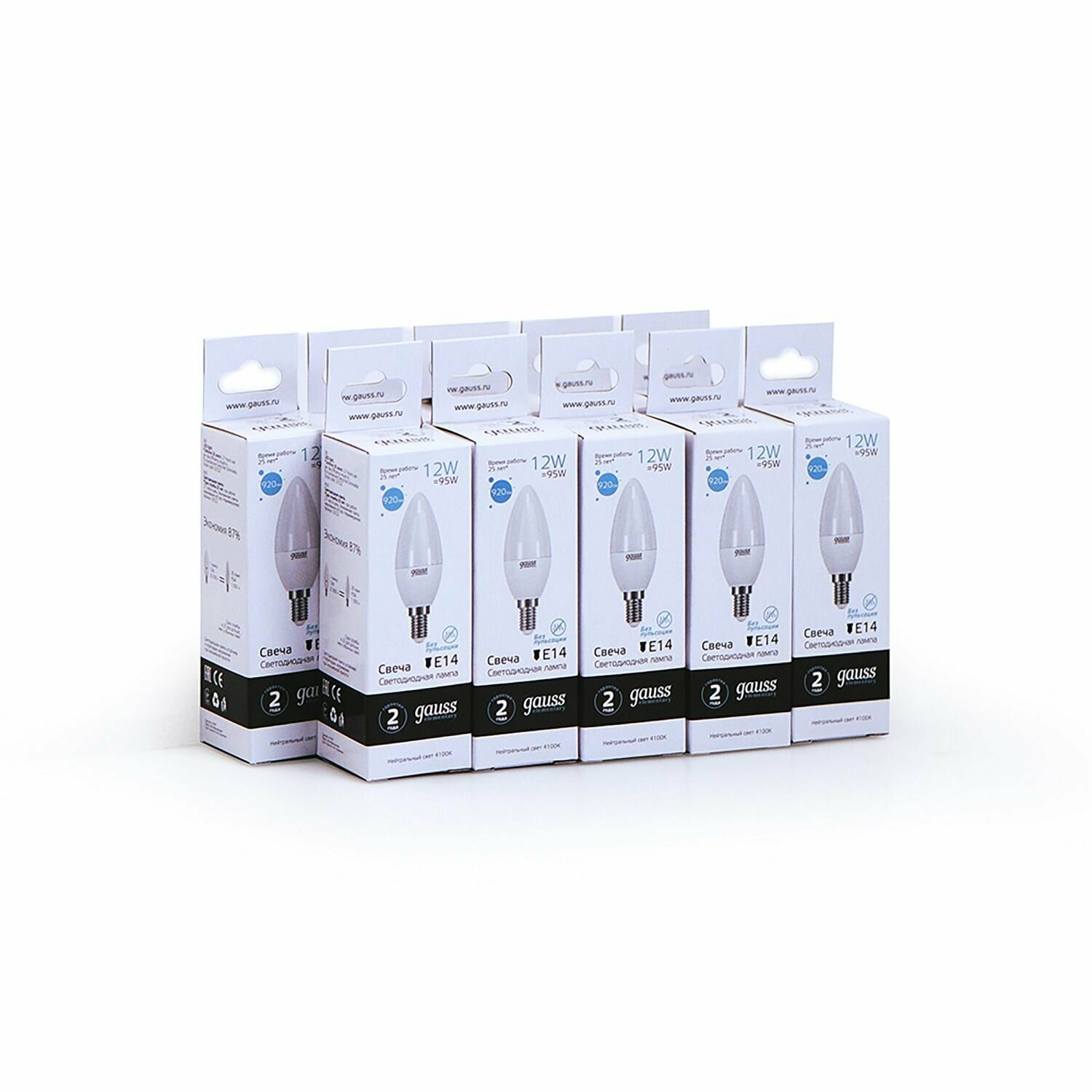 10 цен на 10шт/уп. Лампа LED Свеча 12Вт 230B B35 E14 920Лм 4100К Свет Нейтральный белый арт. 33122 Gauss, уп. 10шт
