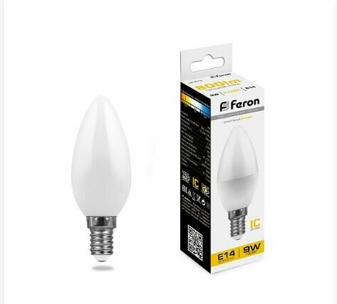 1шт/уп. Лампа LED Свеча 9Вт 230B C37 E14 800Лм 2700К Свет Теплый белый арт. 25798 Feron, уп. 1шт