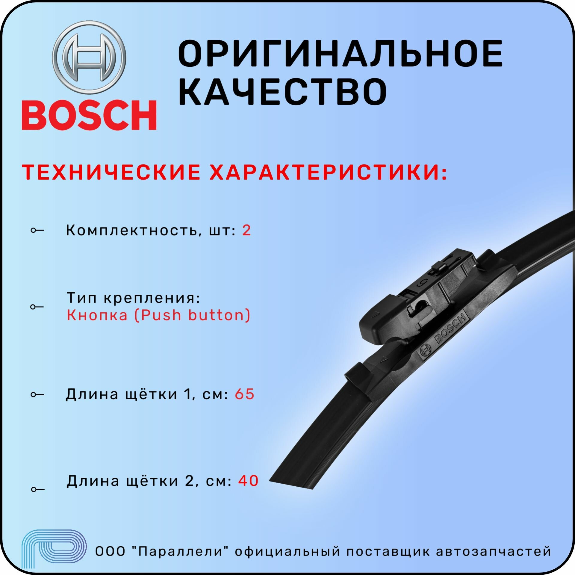 Отзывы на Щетки стеклоочистителя BOSCH Aerotwin A156S, 650/400 ММ, 3397014156 / БОШ