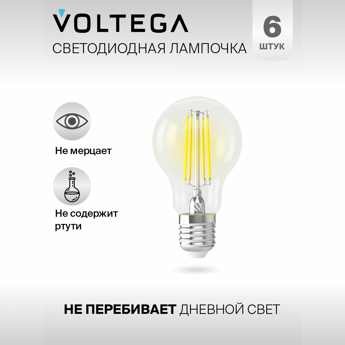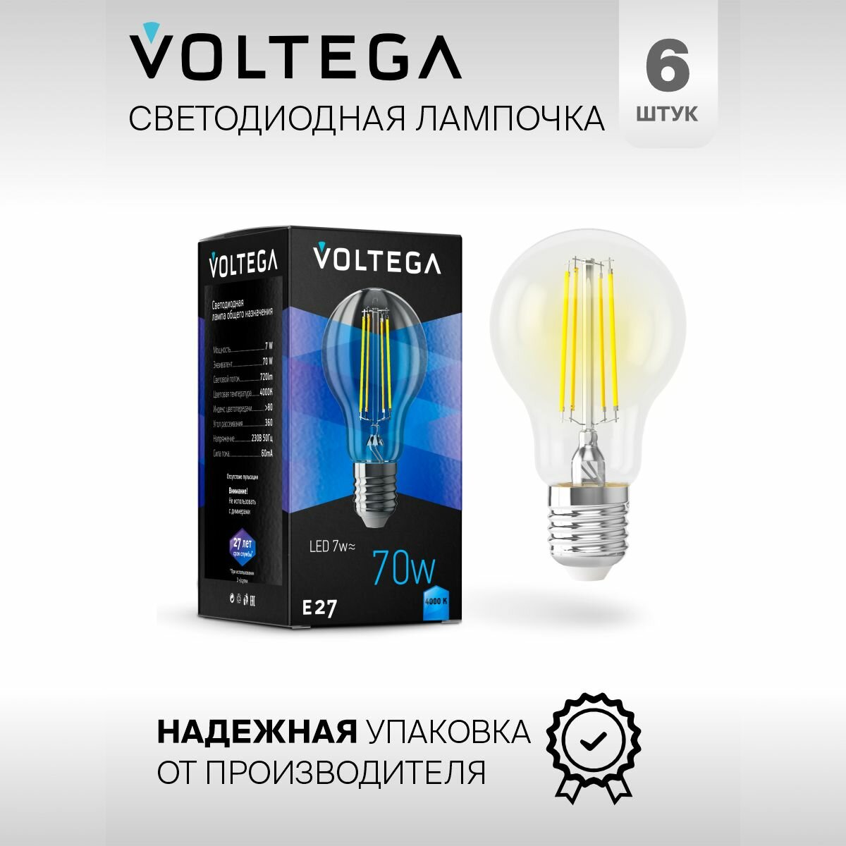 Отзывы на Лампочка светодиодная E27 форма груша 7W нейтральный свет Voltega Crystal A60 4000K упаковка 6 шт.