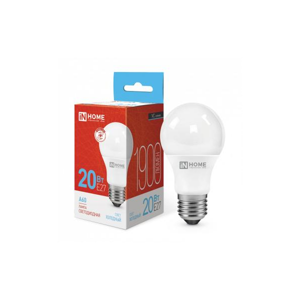Лампа светодиодная IN HOME LED-A60-VC, E27, A60, 20 Вт, 4000 К