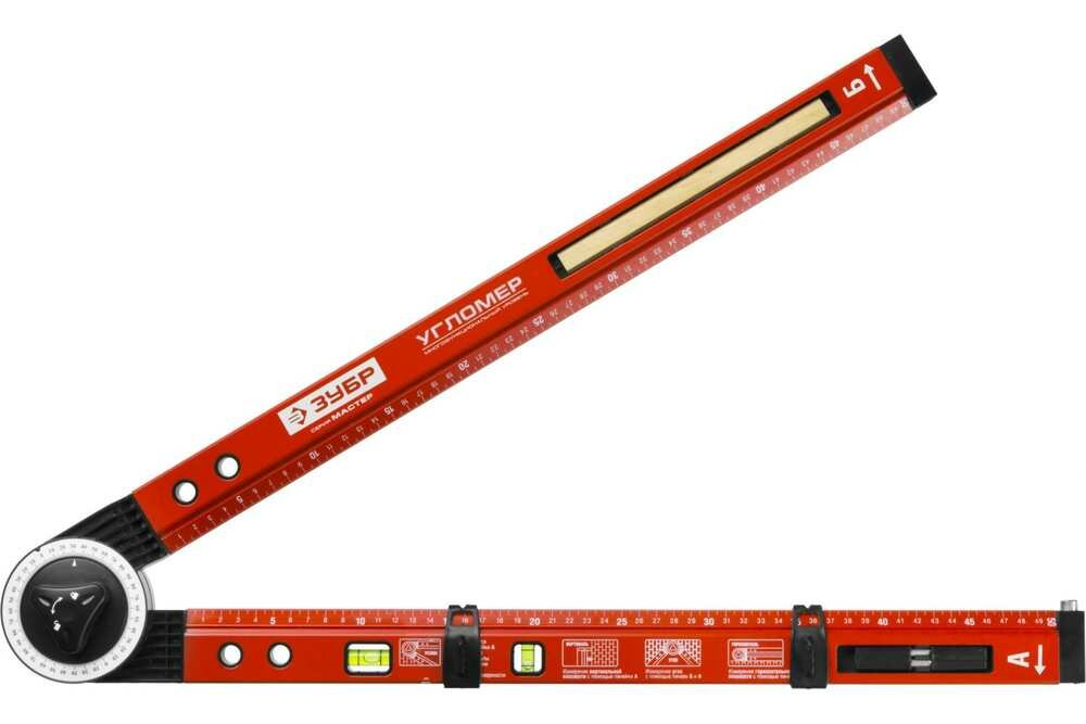 ЗУБР Уровень-угломер ЗУБР "мастер" складной, 2 ампулы (1 поворотная), точность 1мм/м, 500мм