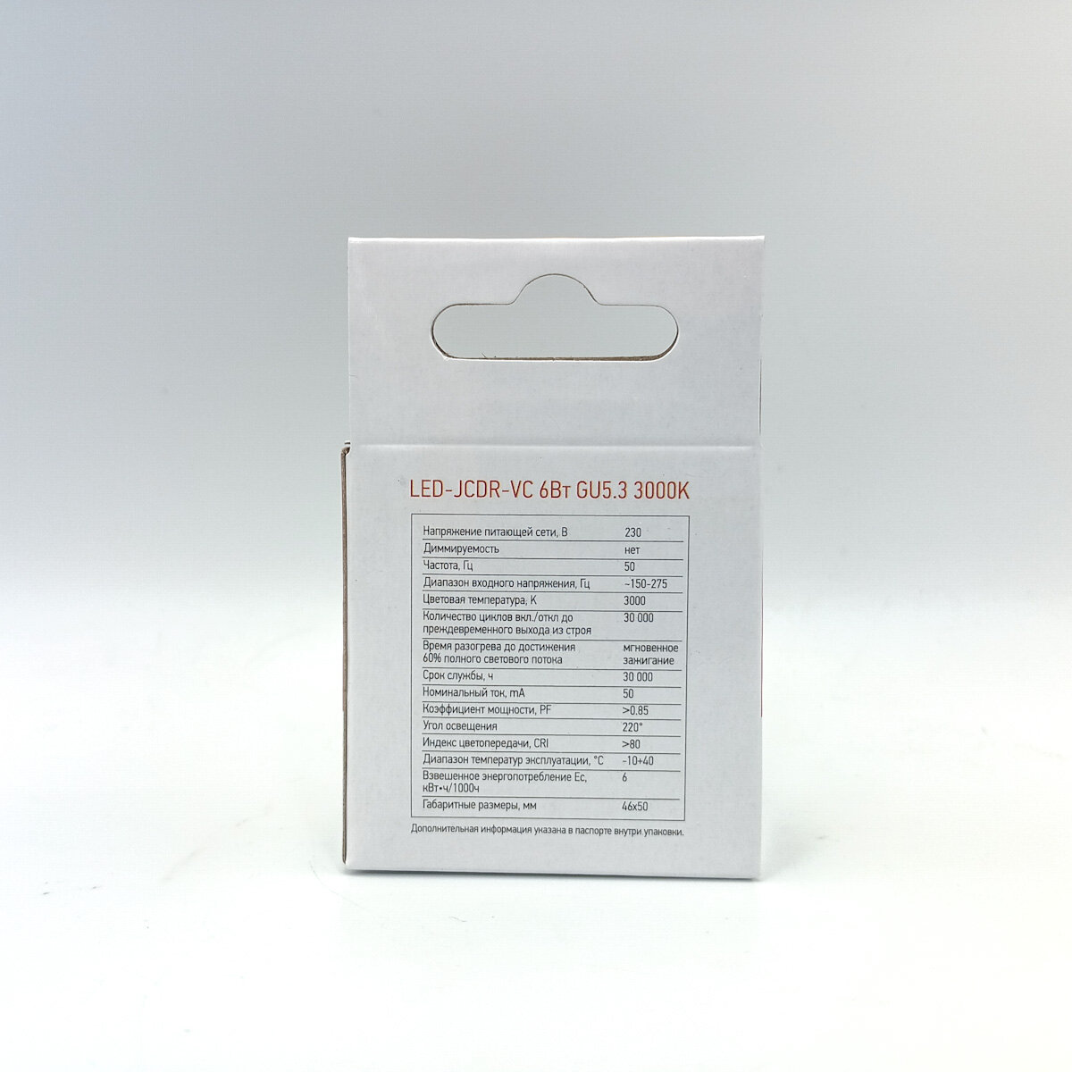 Отзывы на (20 шт.) Светодиодная лампочка IN HOME JCDR, мощность 6 Вт, напряжение питания 220 В, цветовая температура 3000К, теплый белый свет, цоколь GU5.3, размер 50х51 мм