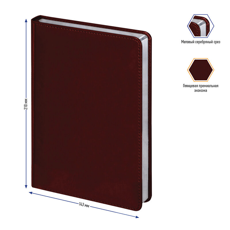 Ежедневник недатированный. A5,160л., кожзам, (Silver Pristine), коричневый, 143x210 мм.