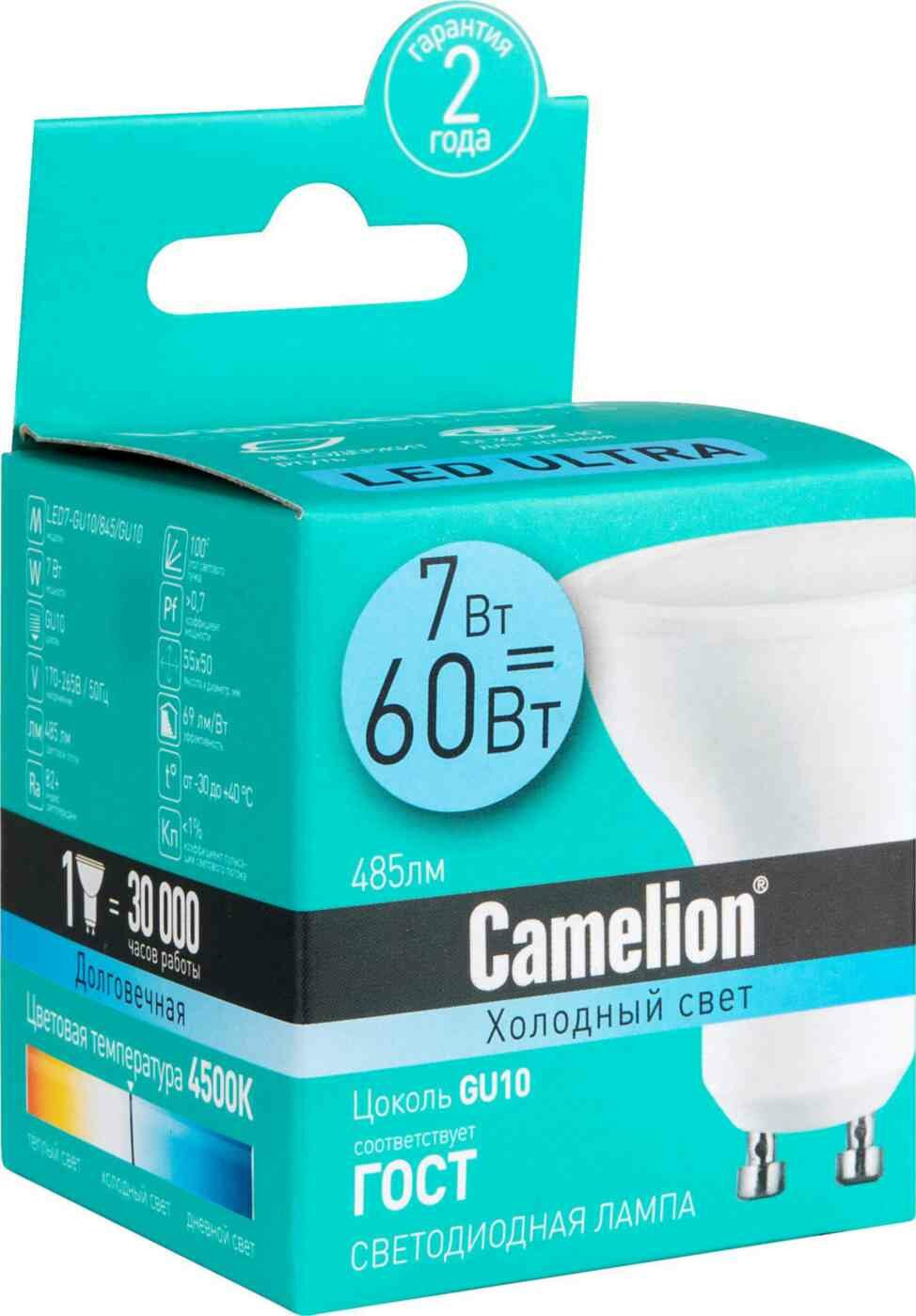 10 цен на Лампа светодиодная Camelion 11655, GU10, PAR16, 7Вт, 4500 К
