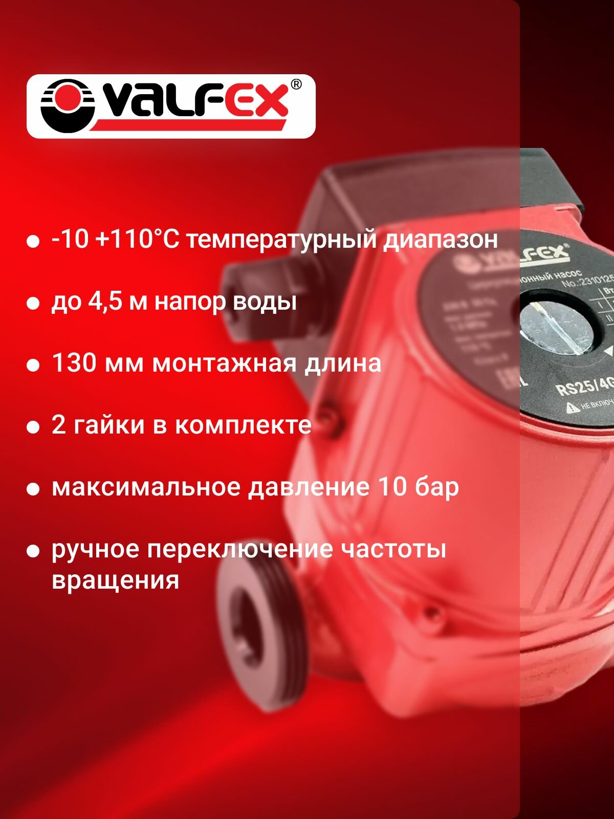 Циркуляционный насос VALFEX VCP 25-40G 130мм информация: