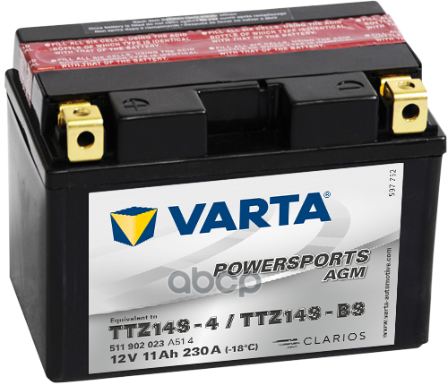 Аккумуляторная батарея POWERSPORTS AGM [12V 11Ah 230A B00] VARTA 511902023 | цена за 1 шт