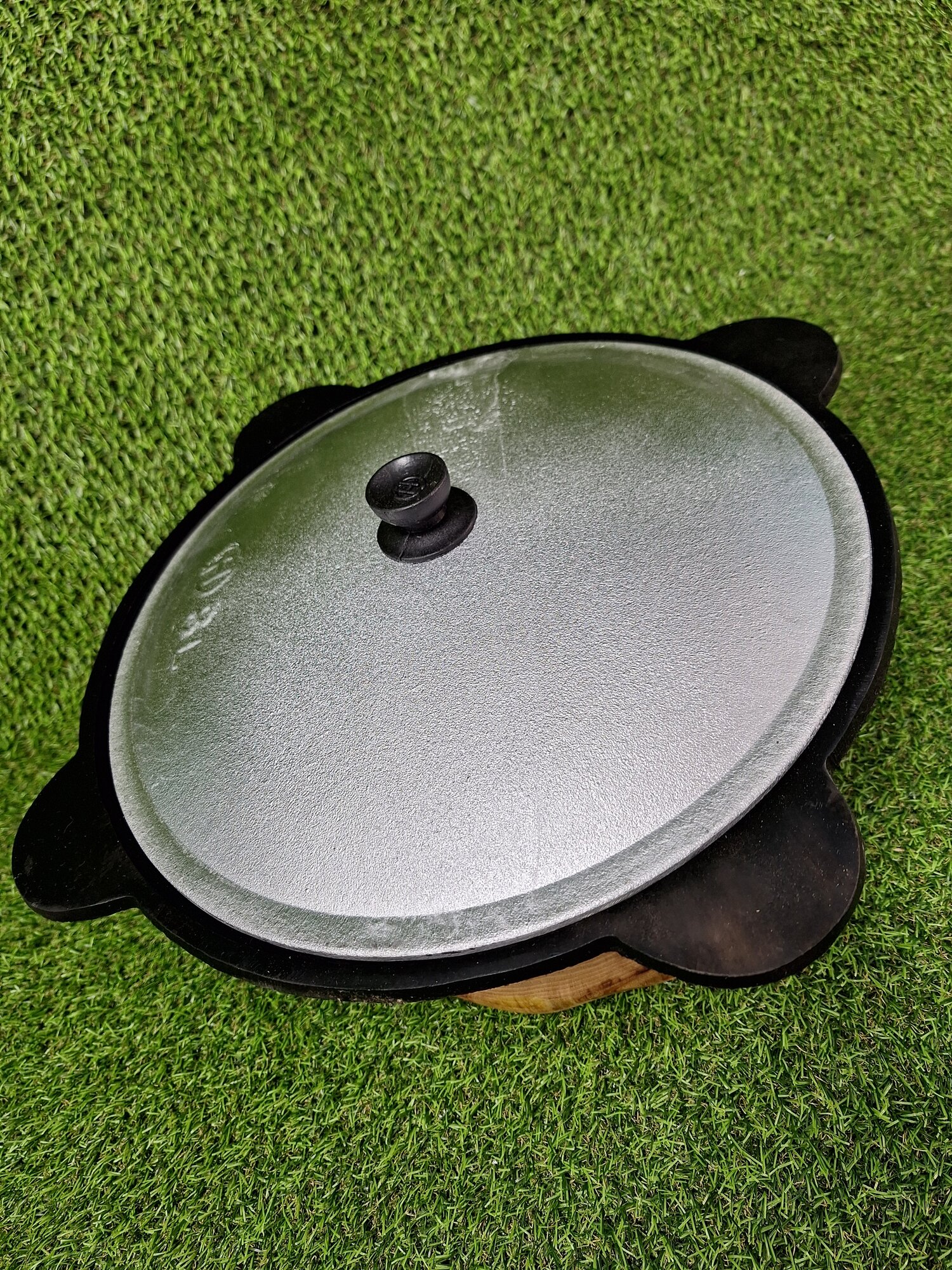 Казан узбекский, чугунный, 4,5 литра(плоское дно), с алюминиевой крышкой