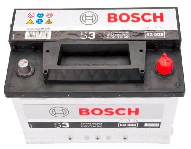 Отзывы на BOSCH 0092S30080 Аккумулятор S3 12V 70Ah 640A 278х175х190 Полярность 0 Клеммы 1 Крепление B13
