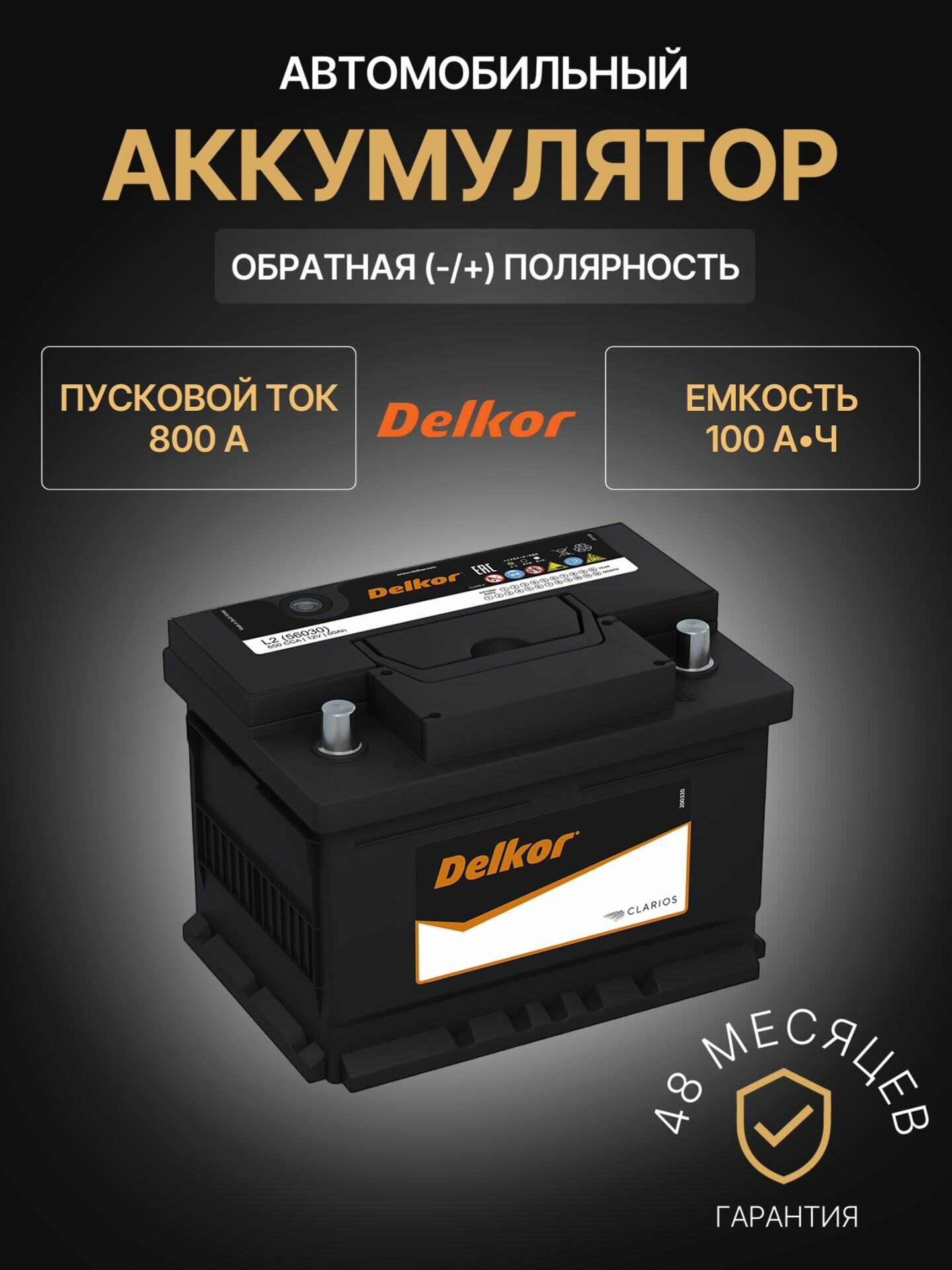 Аккумулятор автомобильный Delkor 60044 12В 100Ач 800А информация: