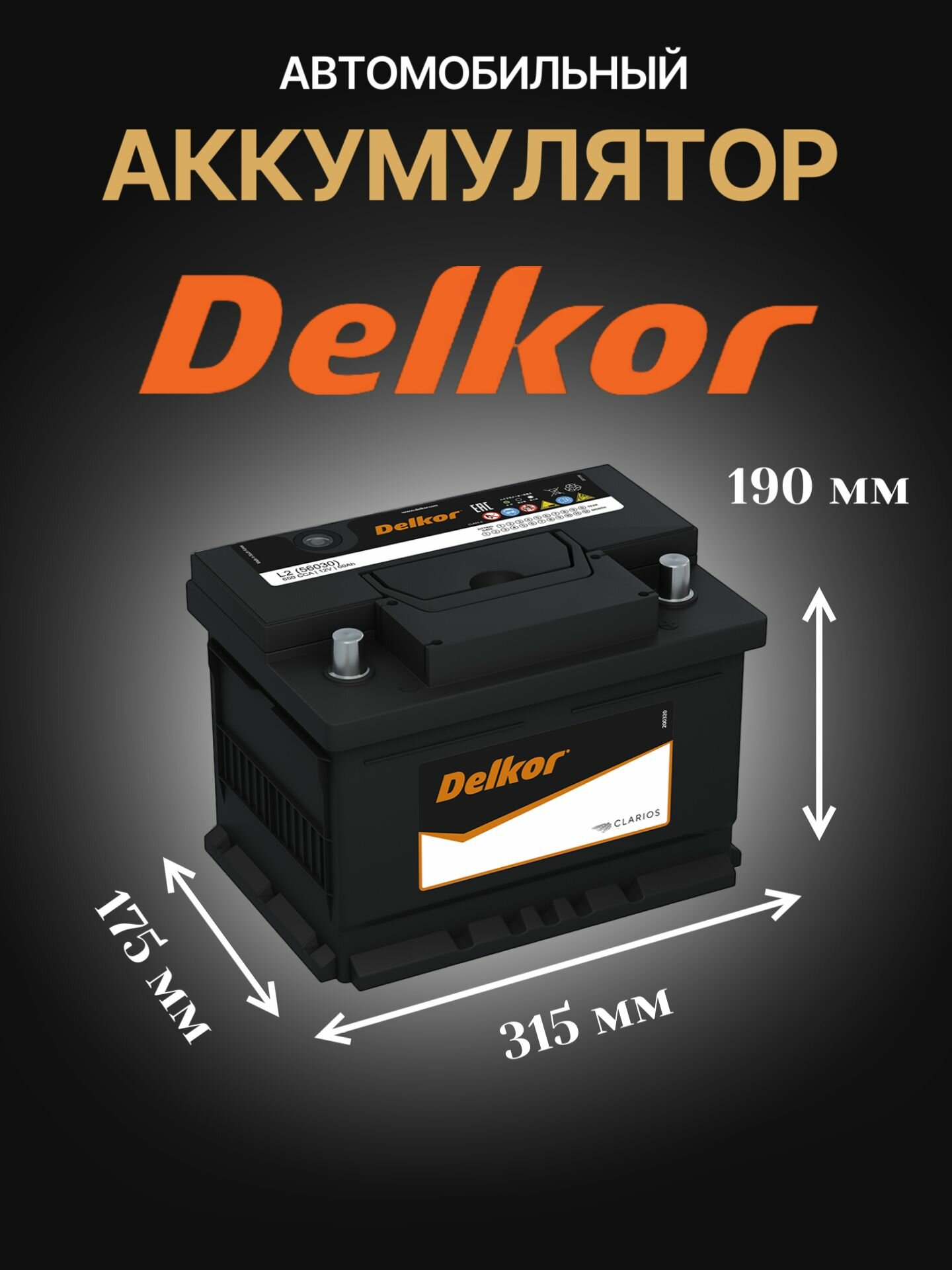 Автомобильный аккумулятор Delkor 56030 242х175х190