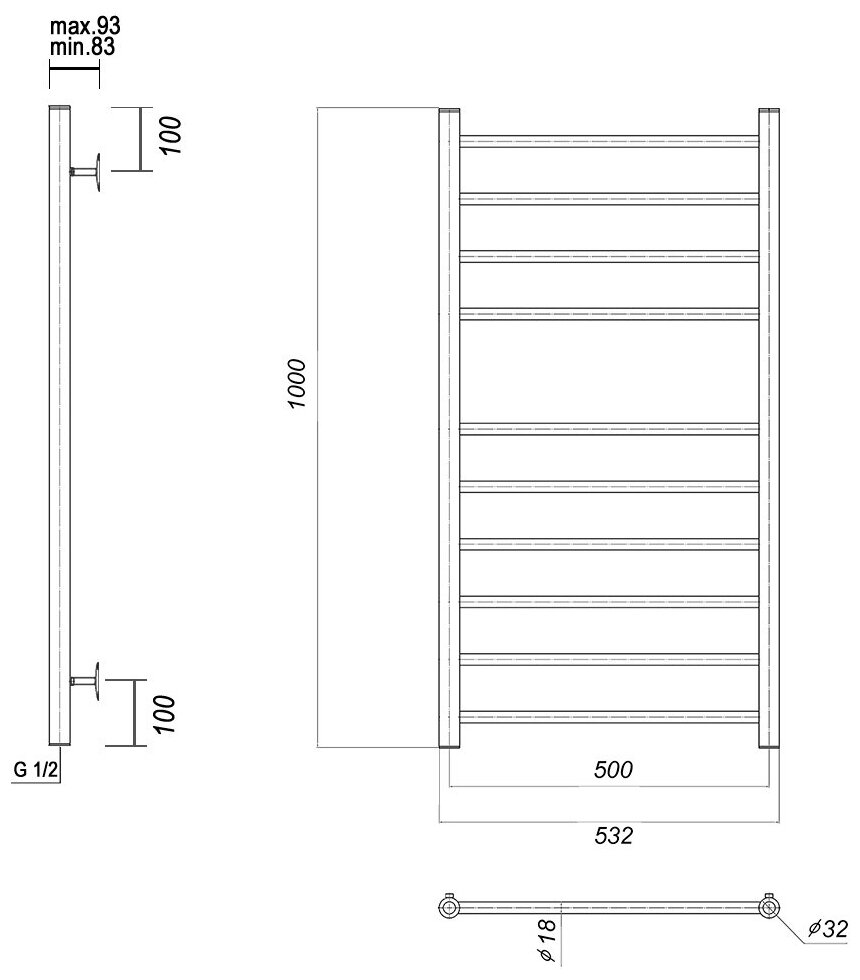 Полотенцесушитель водяной из нержавеющей стали Domoterm Медея П10 500x1000, xром информация: