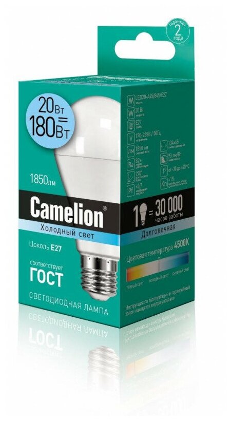 LED A65-20w-845-E27 Лампа светодиодная Camelion LED A65-20w-845-E27 информация: