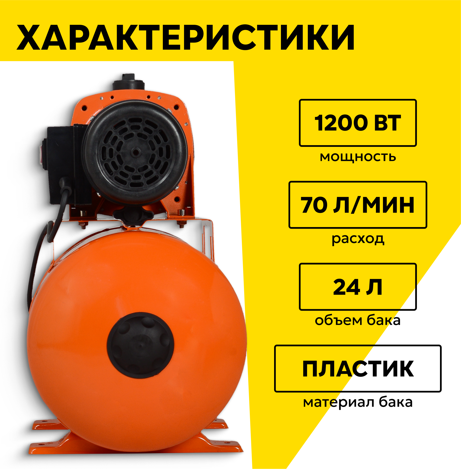 Автономная станция водоснабжения Вихрь АСВ-1200/24, 800 Вт, напор – 40 м, 70 л/мин, гидроаккумулятор – 24 л информация: