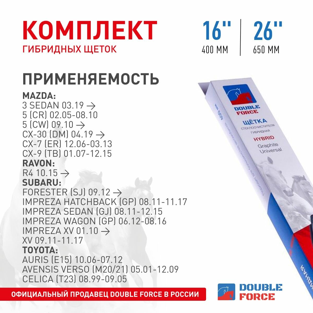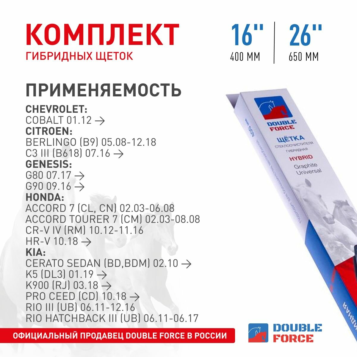 10 цен на Комплект щеток гибридных стеклоочистителя Double Force 400мм( 16' )/650мм ( 26' ) (комплект 2шт.) DFHY16-26 арт. DFHY16-26