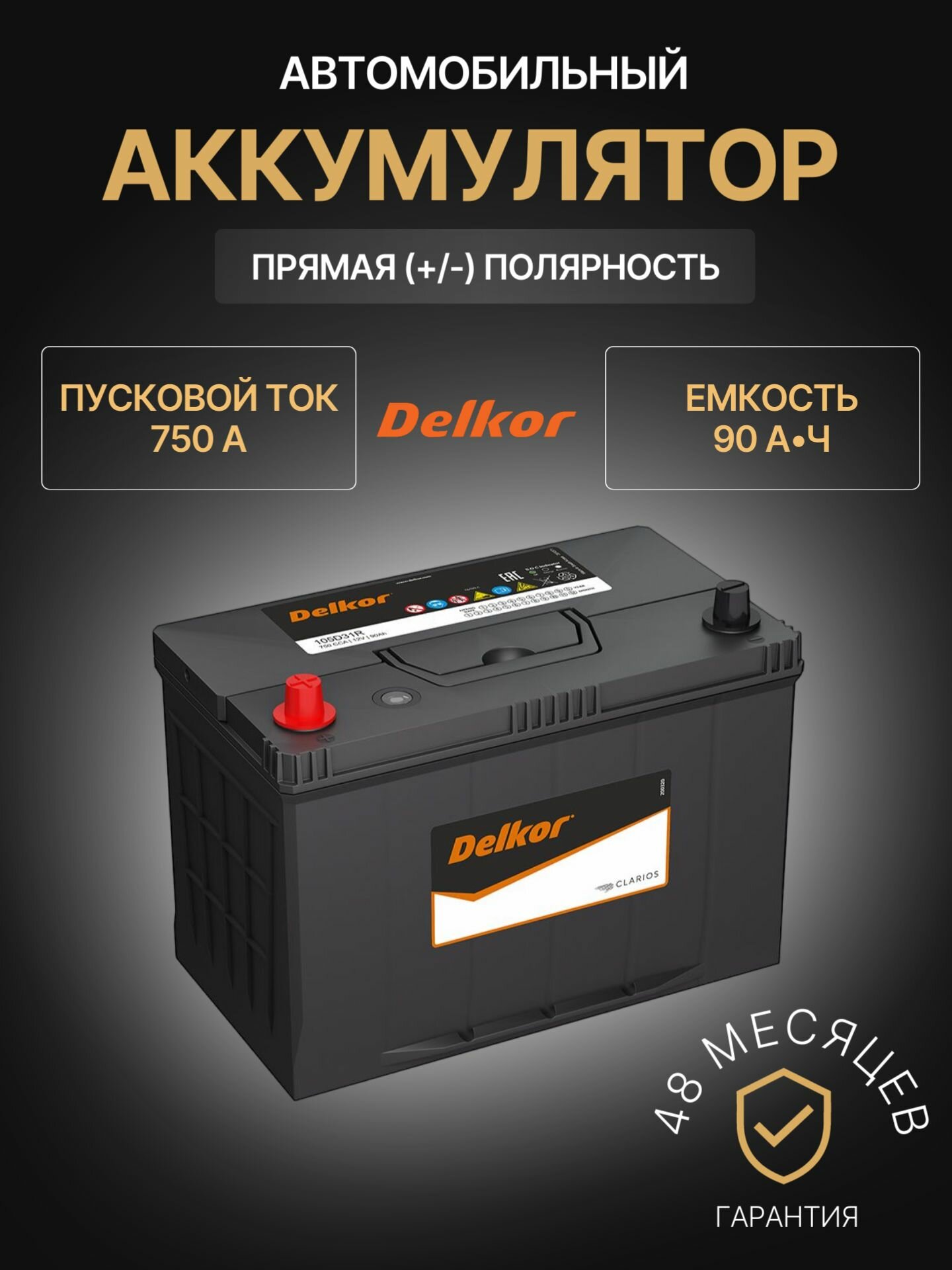 10 цен на Аккумулятор автомобильный Delkor 105D31R 12В 90Ач 750А
