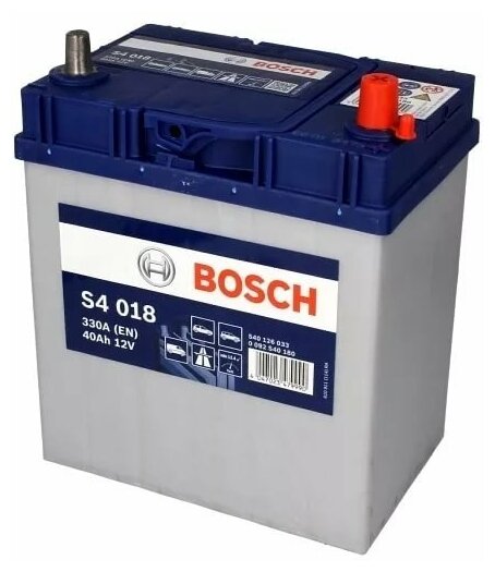 10 цен на BOSCH 0092S40180 Аккумулятор S4 12V 40Ah 330A 187х127х227 Полярность 0 Клеммы 3 Крепление B00