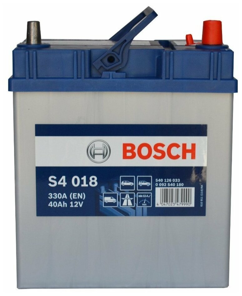 BOSCH 0092S40180 Аккумулятор BOSCH S4 SILVER 12V 40AH 330A ETN 0(R+) B00 187x127x227mm 10.1kg, тонкие клеммы