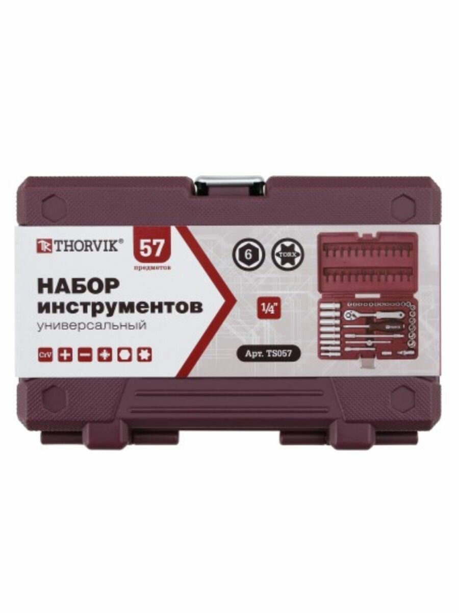 Набор инструмента 1/4"DR, 57 предметов Thorvik TS057, 54003 информация: