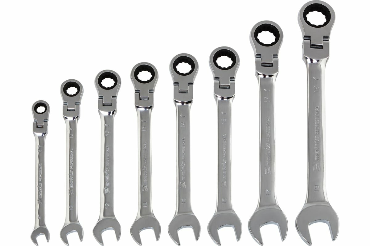 Набор ключей комбинированных, трещоточных шарнирных 8шт.// Matrix 14898