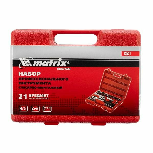Набор инструментов Matrix 13521, с квадратом 1/2", 21 предмет