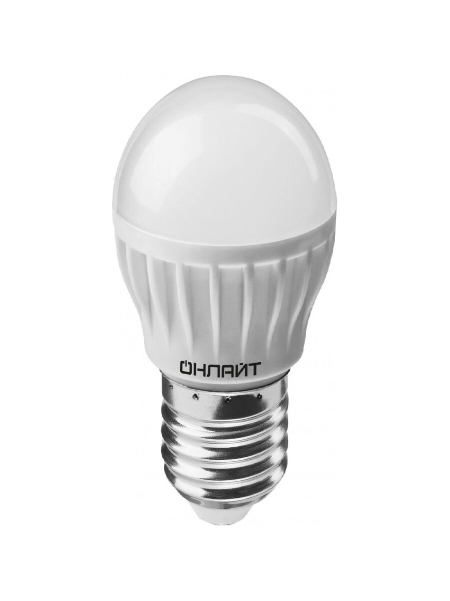 (15 шт.) Светодиодная лампочка онлайт шар G45 E27 6W(470Lm) 4000K 4K 76x45 ОLL-G45-6-230-4K-E27 71646 Нейтральный белый. Цоколь E27 1 833 ₽