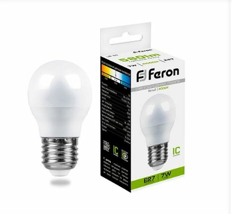 Отзывы на Лампа светодиодная Feron LB-95 Шарик E27 7W 175-265V 4000K 25482 5шт