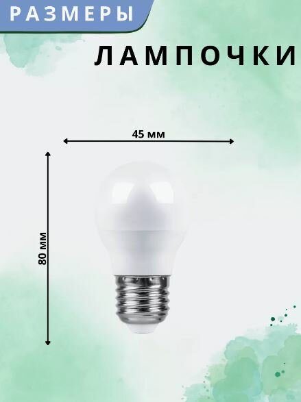 Лампа светодиодная FERON LB-95, G45, E27, 7 Вт, 230 В, 6400 К, 600 Лм, 220°, 82 х 45 мм