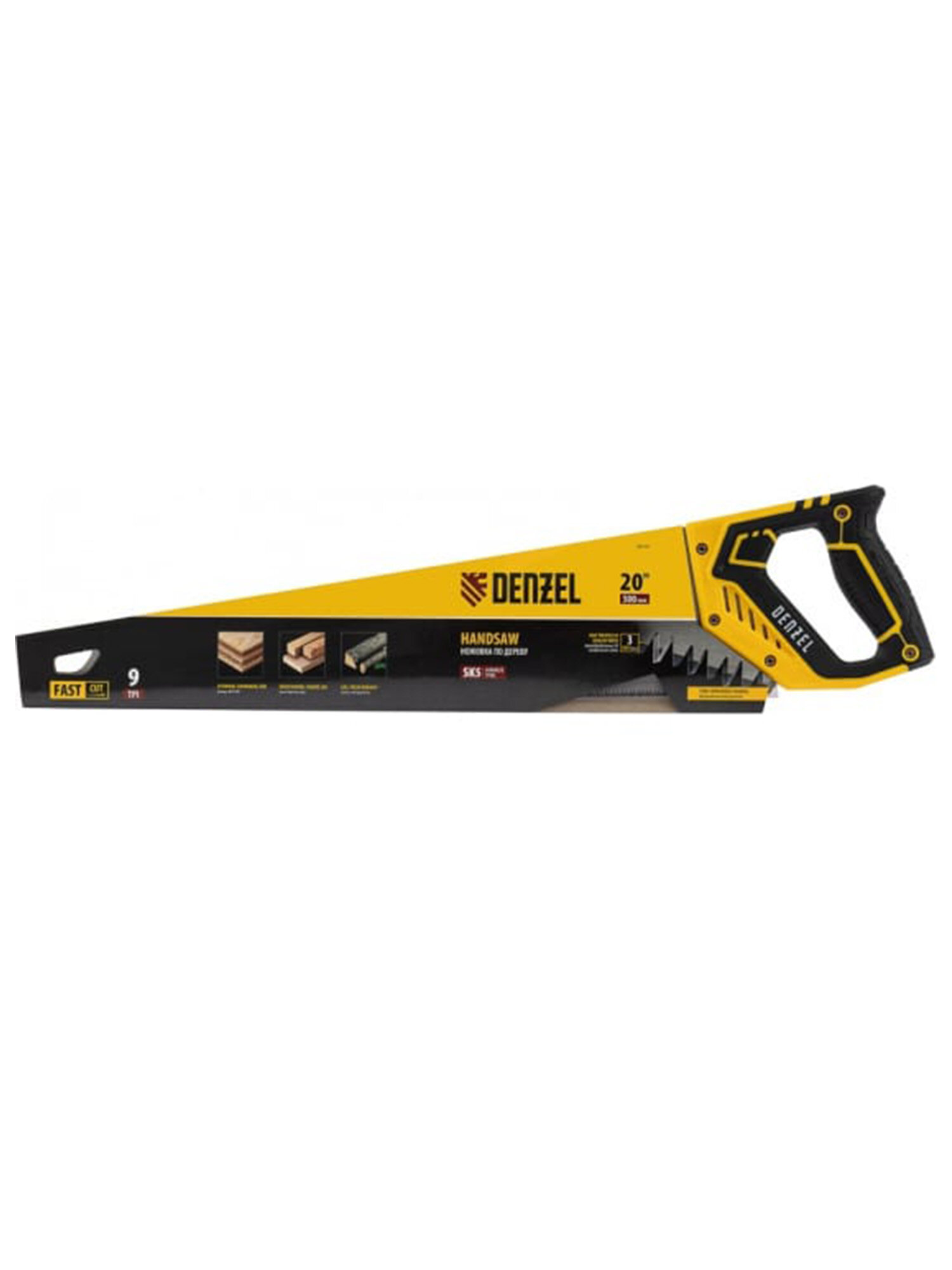 Ножовка по дереву Denzel 500 мм, 9 TPI, зуб 3D, двухкомпонентная рукоятка 24147