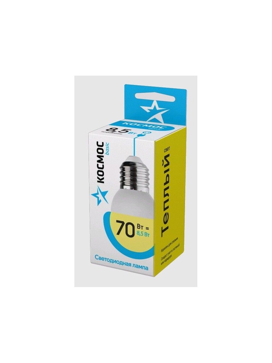 Светодиодная лампа Космос, 8.5 Вт, E27, 3000 K, шар, LED8.5wGL45E2730, теплый белый