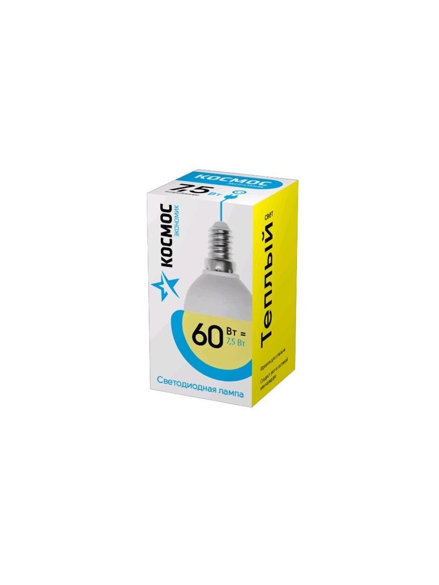 (20 шт.) Светодиодная лампочка Космос шар E14 7,5W (7W) (590lm) 3000K 2K матов. 79x45 LkecLED7.5wGL45E1430 Нейтральный белый. Цоколь E14 2 060 ₽