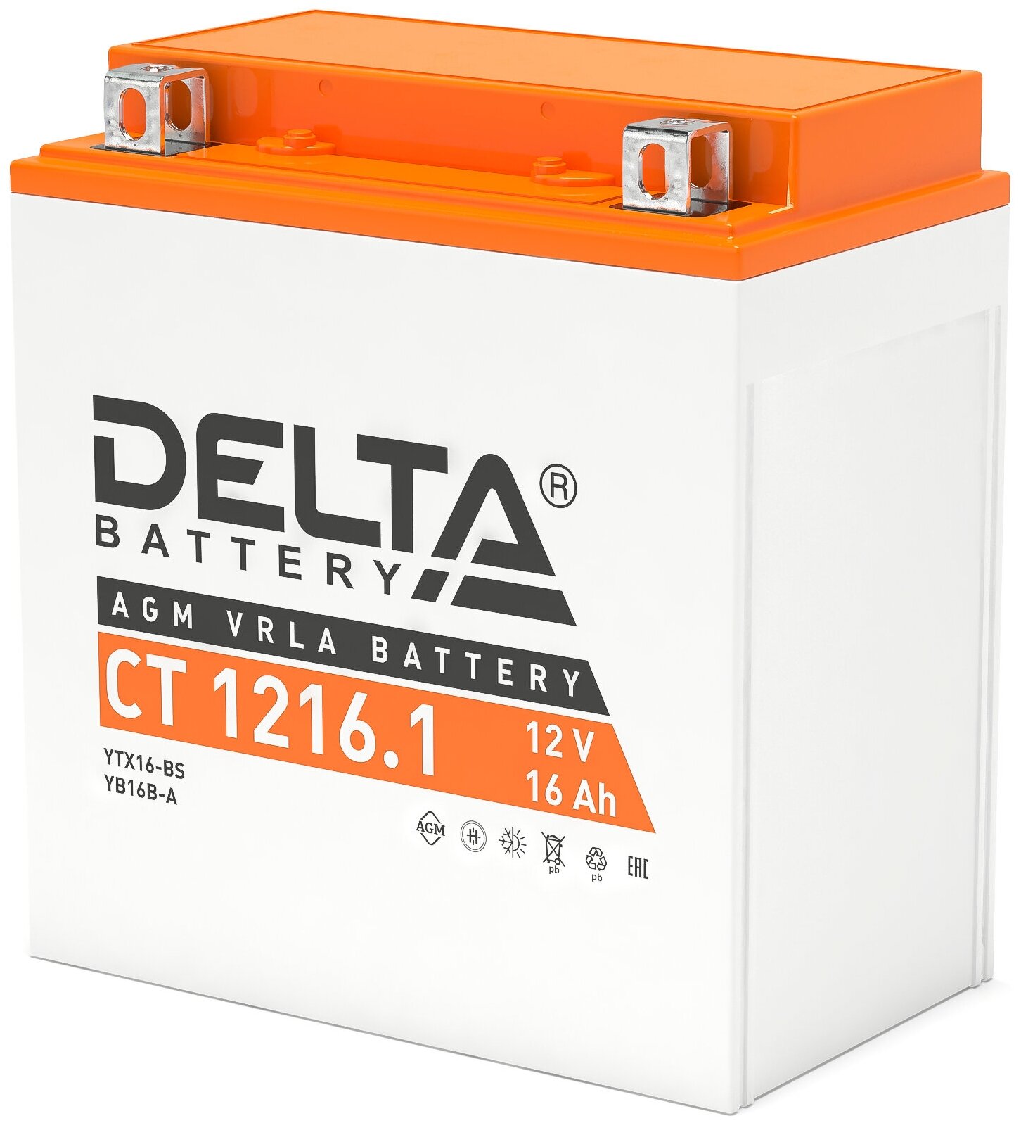 Мото аккумулятор стартерный Delta CT 1216.1 12В 16Ач прямая полярность 230А (12V 16Ah) (YTX16-BS; YB16B-A) AGM, аккумулятор для мотоцикла, мопеда, квадроцикла, снегохода, гидроцикла генератора