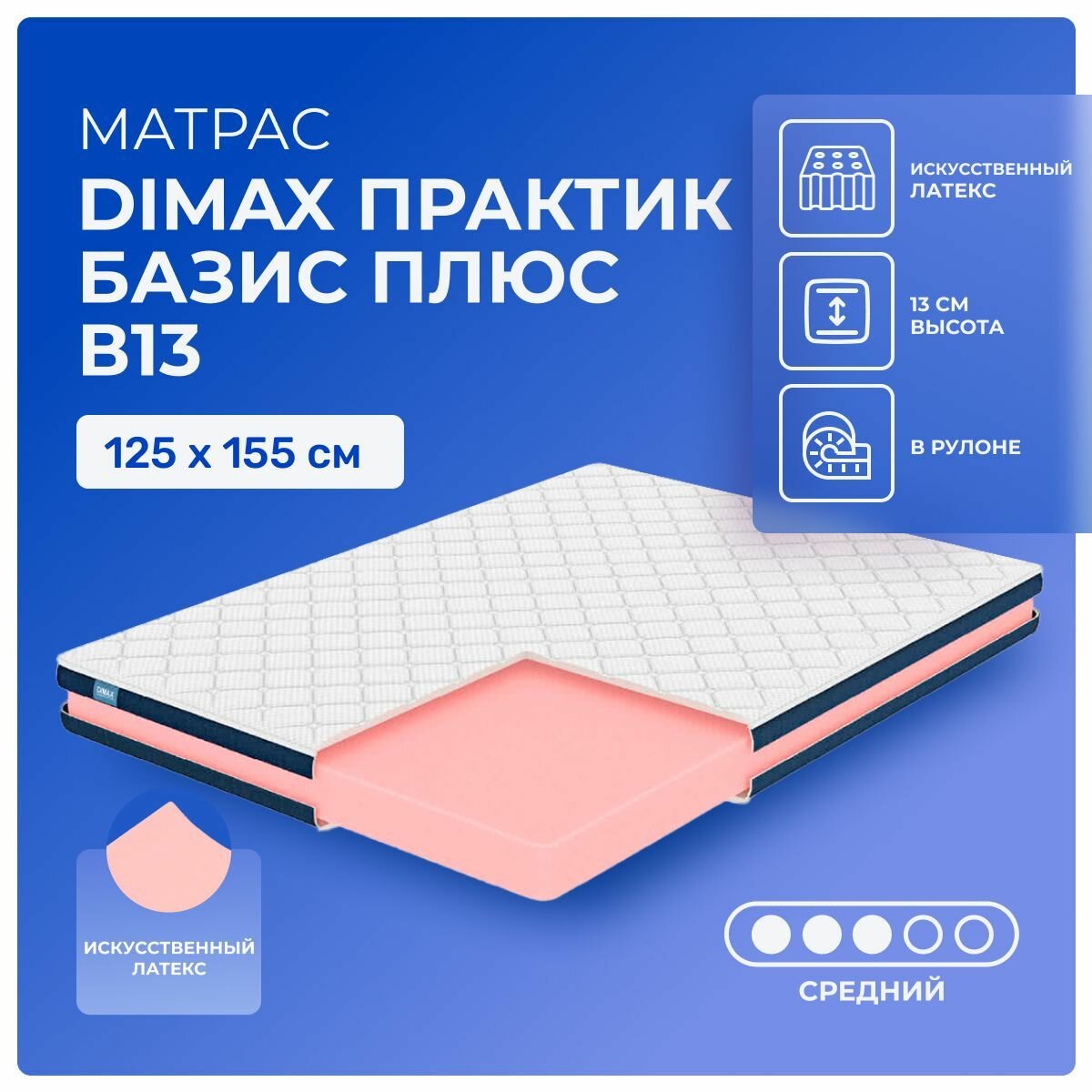 Матрас 125х155 Dimax PracticBasis 13 Plus, беспружинный, cредне-жёсткий, пенополиуретан, полутораспальный 155х125 информация: