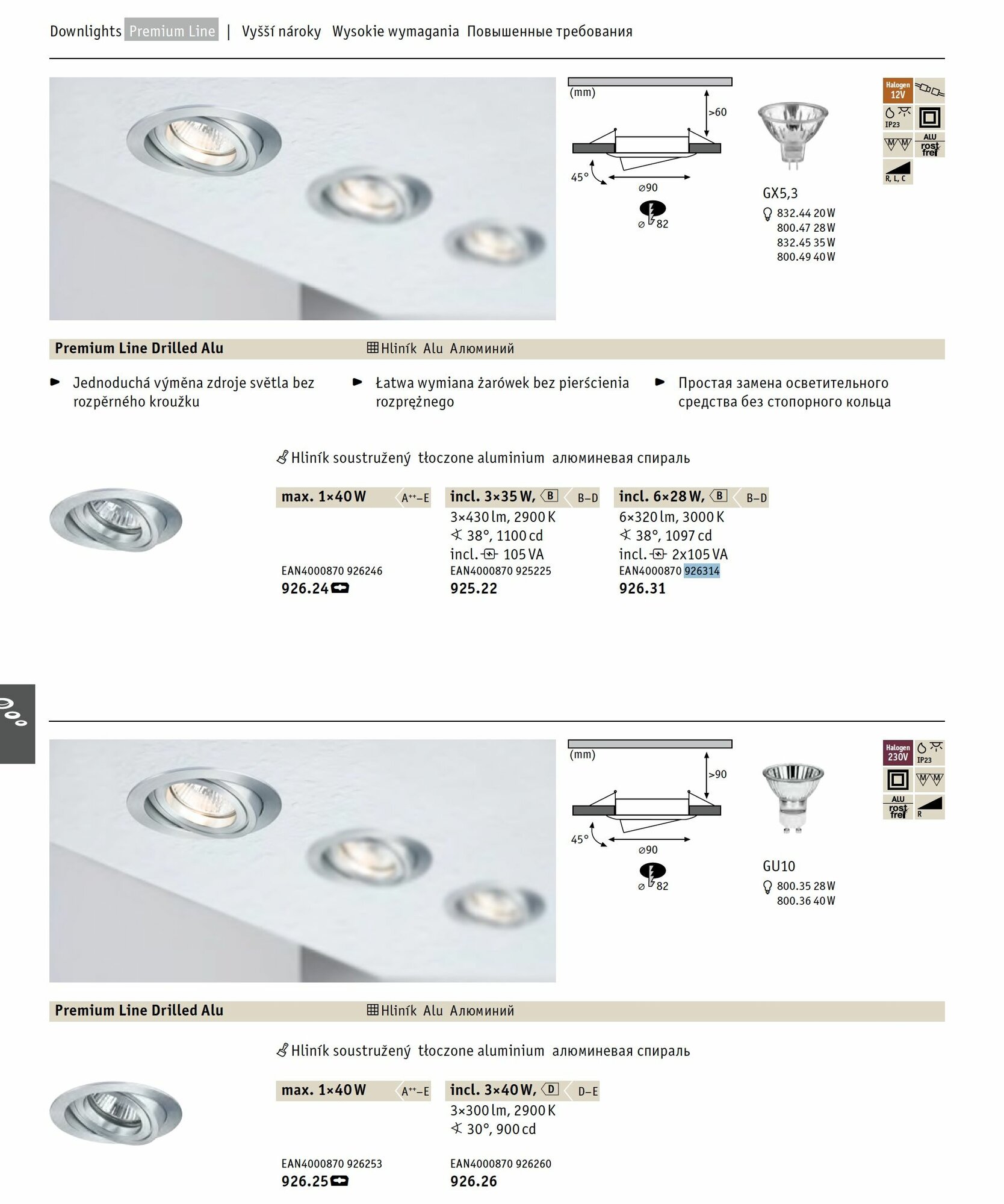 Светильник потолочный Paulmann Premium Line Drilled Alu макс.40Вт GU10 230Вт IP23 Алюминий тертый Без ламп 92625. информация: