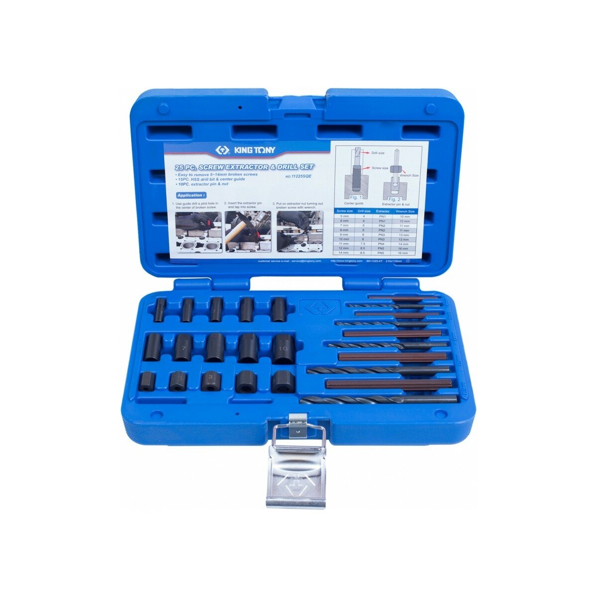 11225SQ KING TONY Набор экстракторов и сверел, 25 предметов
