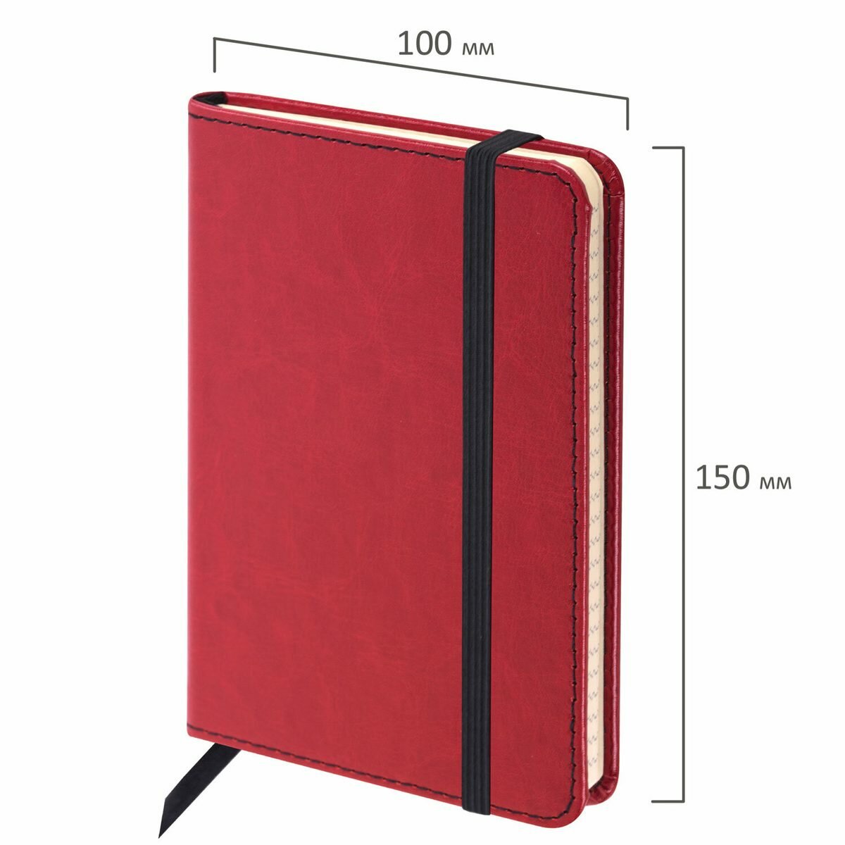 Блокнот малый формат (100x150 мм) А6, BRAUBERG "Office", под кожу, 80 л., клетка, красный, 113326