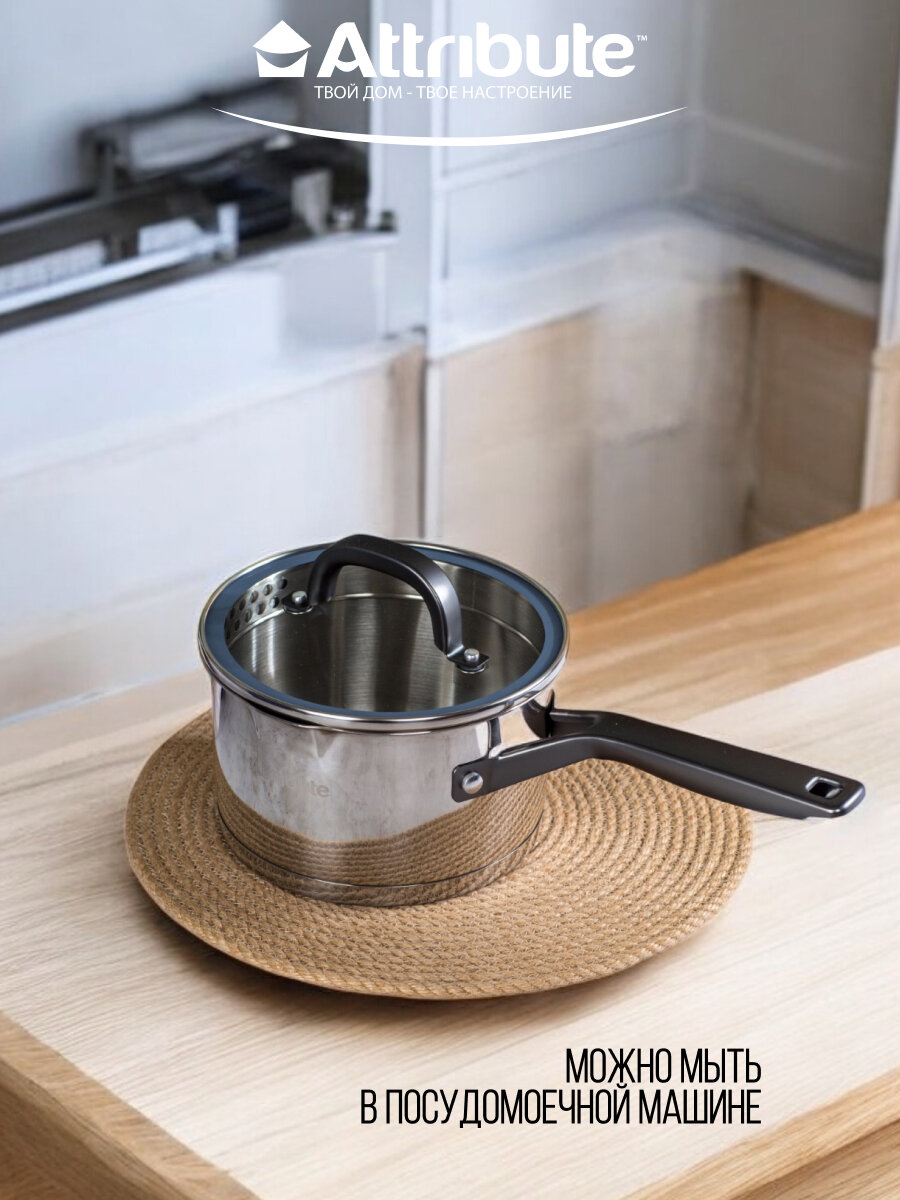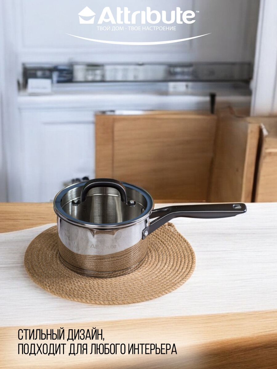 Ковш из нержавеющей стали с крышкой Attribute DAVINCI 1.75л 16см индукция информация: