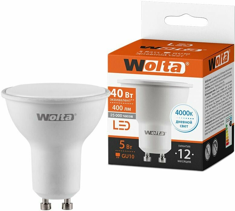 Светодиодная лампа WOLTA 25SPAR16-230-5GU10 5Вт 4000K GU10 информация: