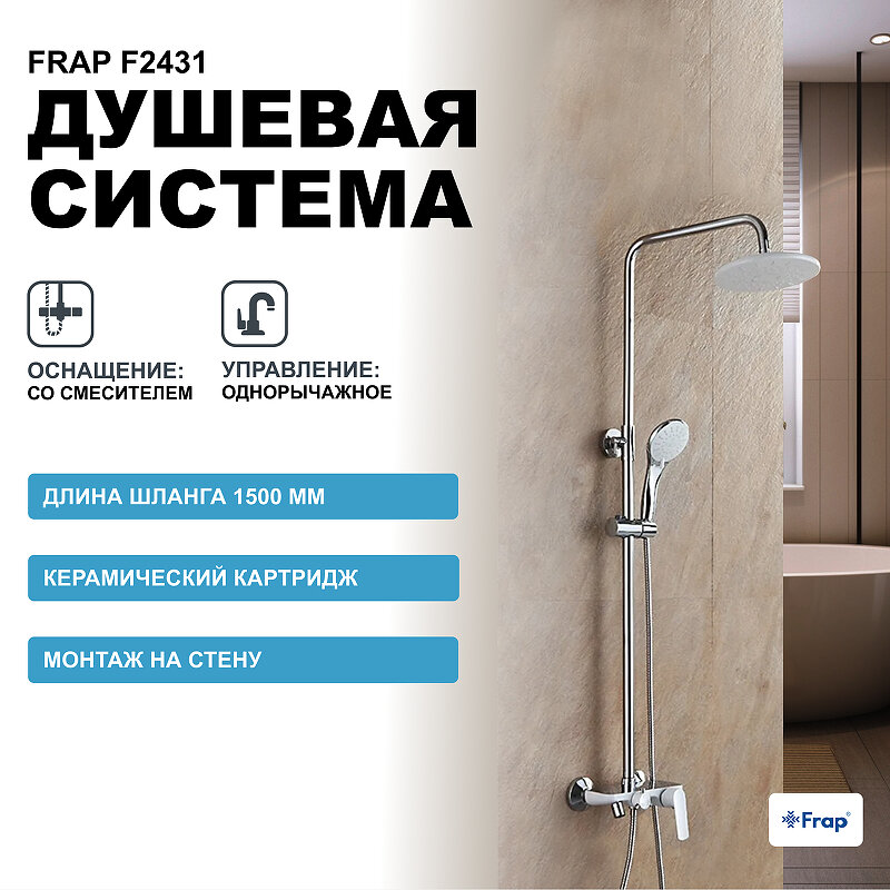 FRAP F2431 белый/хром, Душевой гарнитур со смесителем