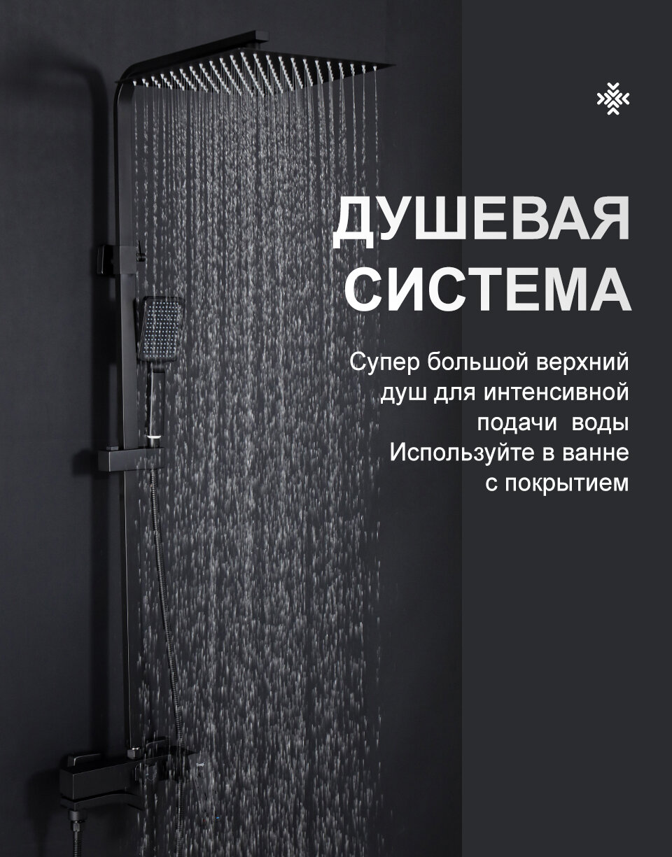 Душевая стойка со смесителем и тропическим душем Frap F24803-16 нержавеющая сталь, черный информация: