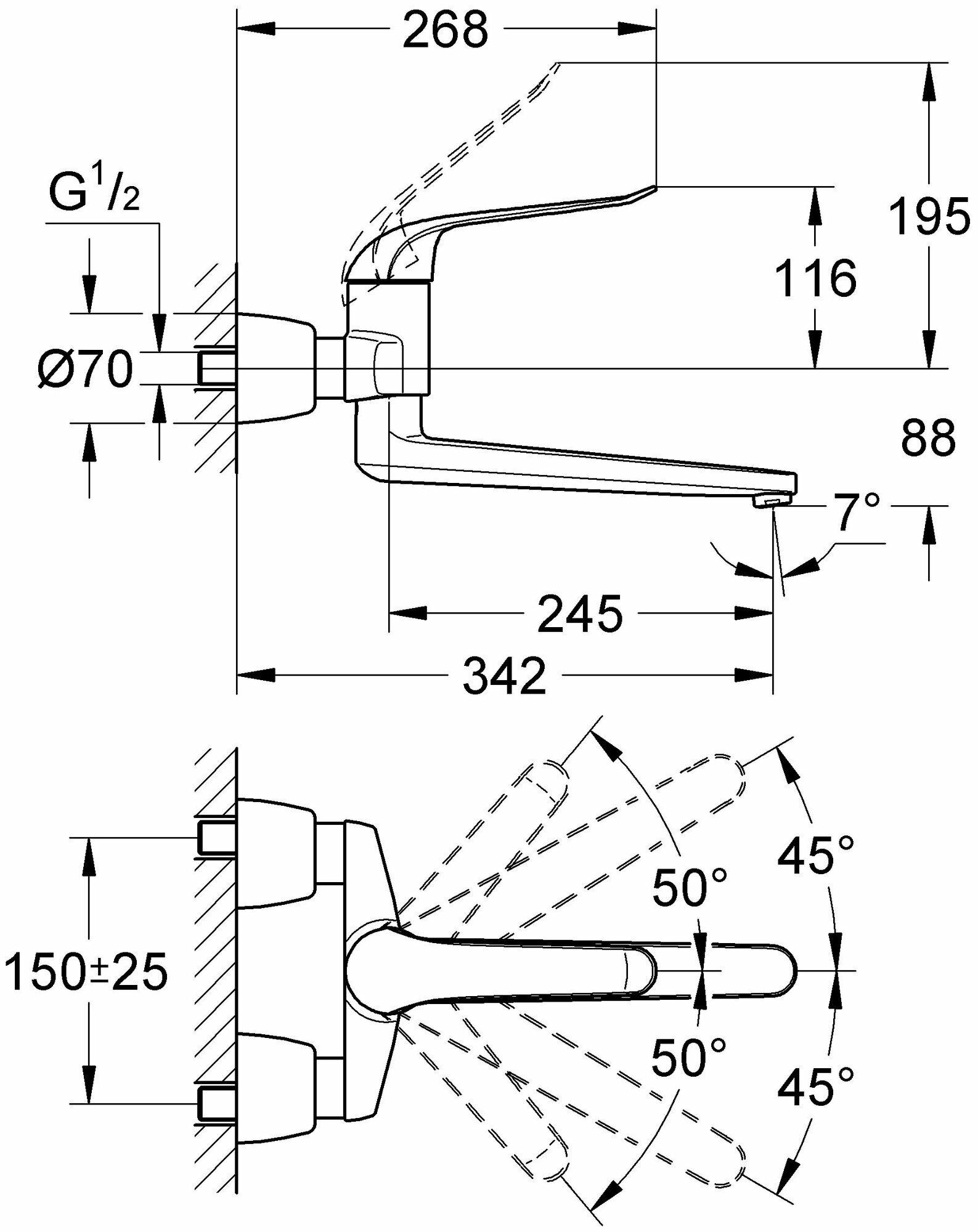 Смеситель для раковины GROHE Euroeco Special (вынос 342 мм, длина рычага 170 мм), хром (32775000) информация: