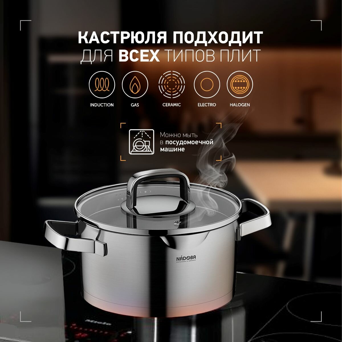Кастрюля с крышкой Nadoba, DONA, 20 см/3,1 л, нержавеющая сталь, для индукции информация: