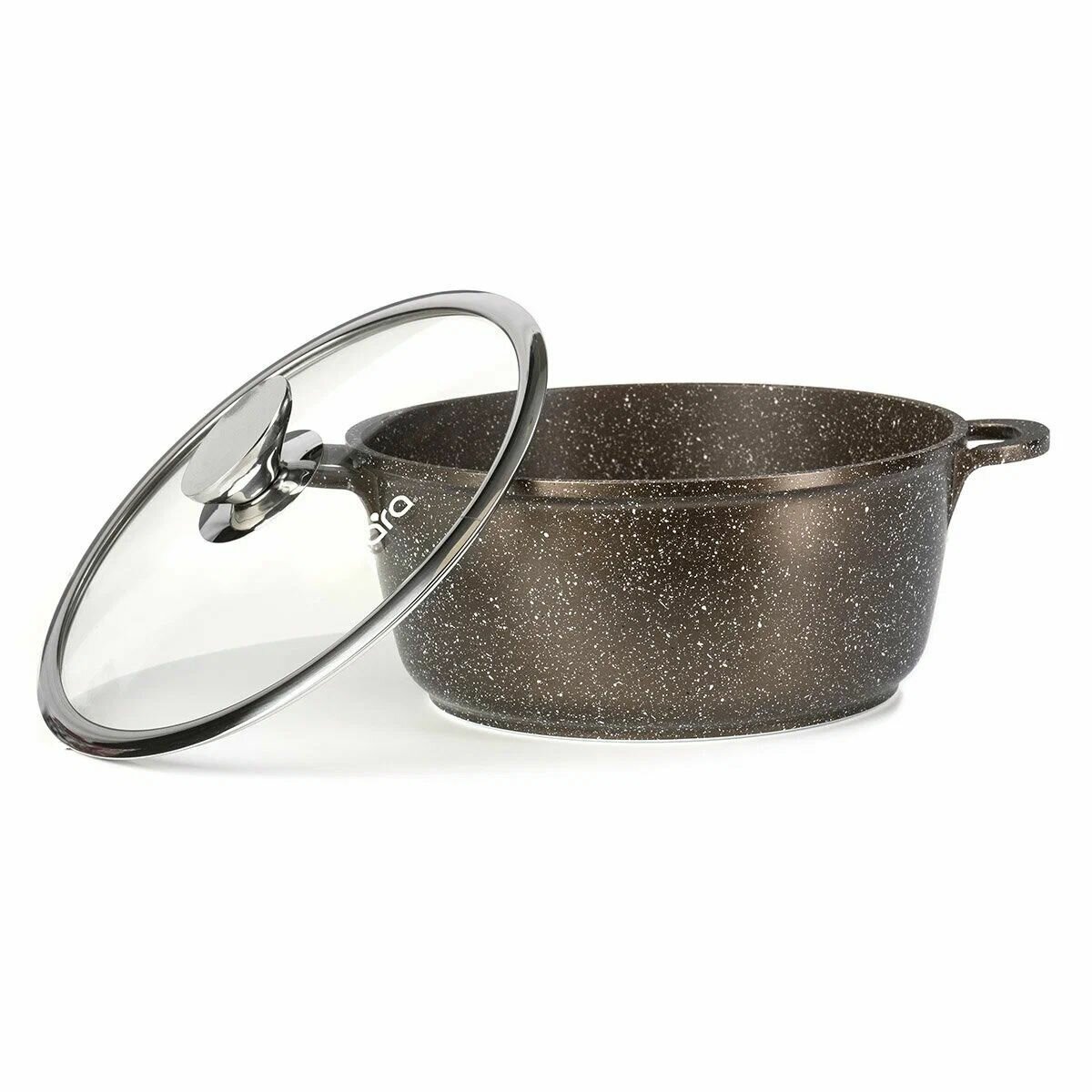 Кастрюля алюминий литой А/П 4,2Л мрамор RIO СТ/КР из жаропрочного стекла индукция LARA